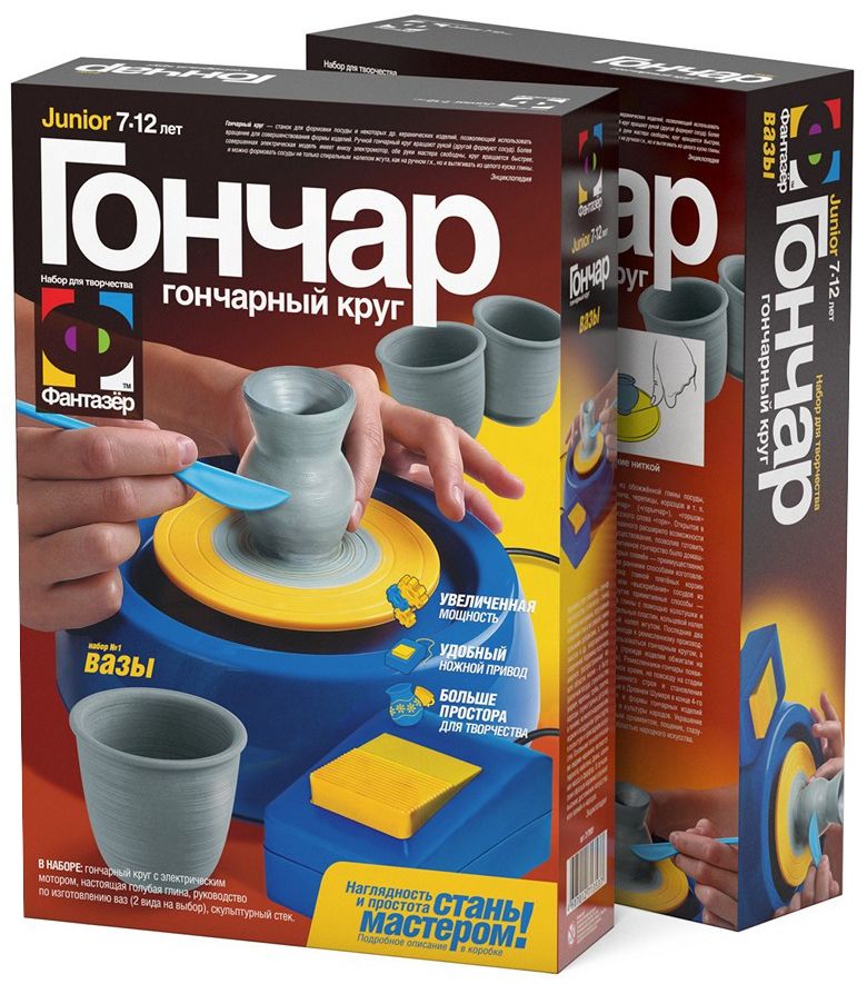 В комплекте: глина голубая, гончарный круг, стек, руководство.