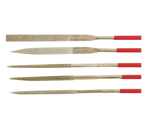 В комплекте 5-ть надфилей. Набор предназначен для слесарных работ с жесткими материалами: металлами, керамической плиткой, стеклом и пр. Для обеспечения долгого срока службы на лезвия нанесено алмазное напыление.