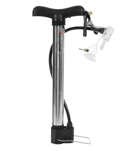 Насос подходит для футбольных и волейбольных мячей, автомобильных и велосипедных шин. Устройство с простым штоком и зажимом ниппеля универсально благодаря наличию 4-х насадок.
