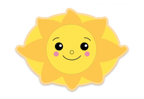 Изображение солнышка с расходящимися в стороны лучиками украшает круглую настенную декорацию для ДОУ.