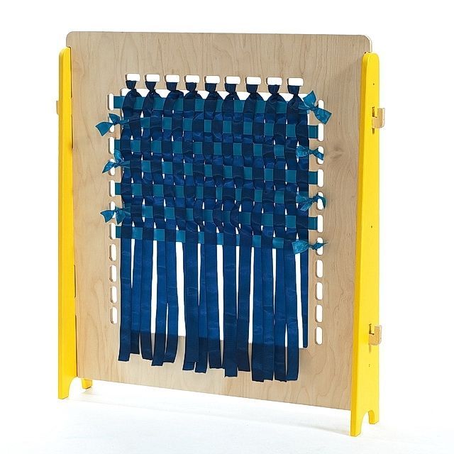 Гладкая панель на опорах-подставках оснащена окошком с элементами для плетения (ленточками). Составляя узор, дошкольник задействует логику и память. Занятие положительно влияет на психоэмоциональное состояние и мелкую моторику.