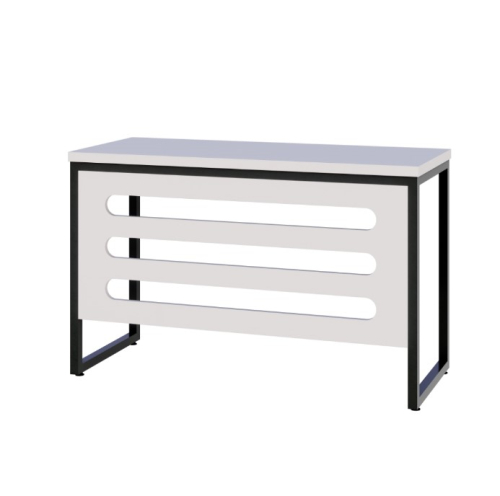 Двухместная парта изготовлена из ЛДСП, обрамлена ПВХ-кромкой. Царга выполнена из МДФ. Острые углы столешницы закруглены. Сборно-разборный каркас изготовлен из профильной трубы и покрыт порошковой краской.