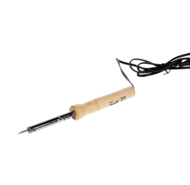 Электрический паяльник нагревается за 8 минут. Максимальная температура составляет 400°C. Состояние паяльного стержня непрерывно контролируется. Ручка из дерева покрыта термостойким лаком, поэтому не скользит.