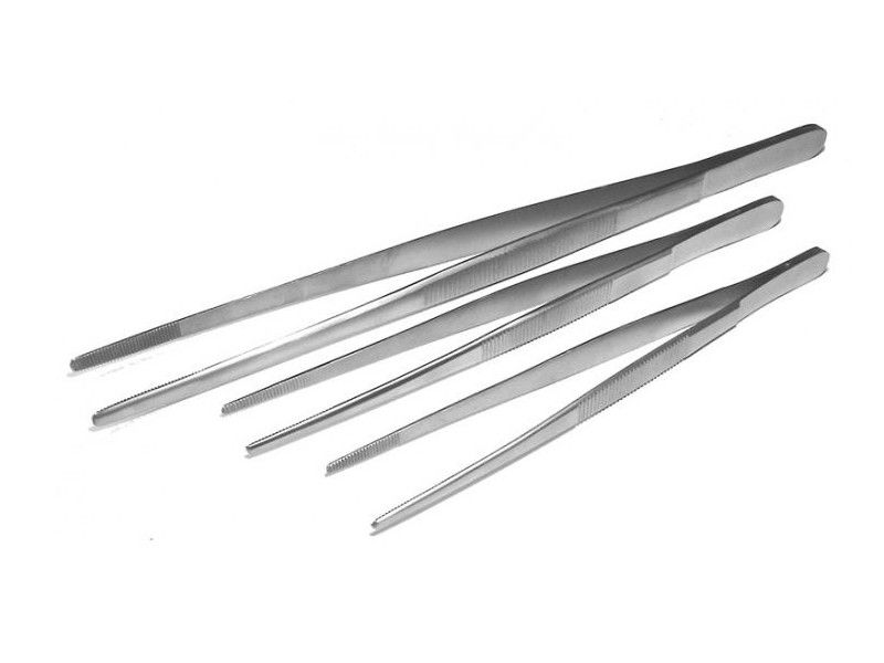 Ширина пинцетов варьируется, рабочая часть для пинцета длиной 200 мм — 2,5 мм шириной).