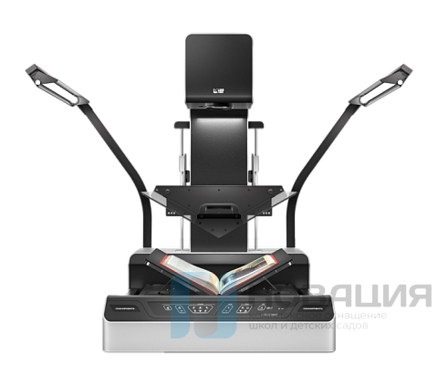 Специальная балансировка панелей компенсирует толщину корешка книг толщиной до 15 сантиметров, позволяя качественно сканировать как листовые, так и твёрдые страницы под разными углами наклона.