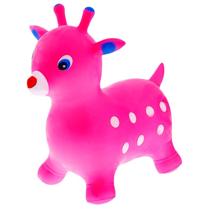 Игрушка в виде олененка (с пружинящим эффектом) позволяет ребенку перемещаться по комнате верхом. Спинка животного выполняет роль сиденья, а рога или ушки используются вместо рукояток. Упругая резиновая поверхность легко отмывается. Игрушка-попрыгун улучшает настроение, помогает побороть укачивание и укрепить мышцы. Изделие выдерживает нагрузки до 50 кг, при необходимости заменяет стульчик.