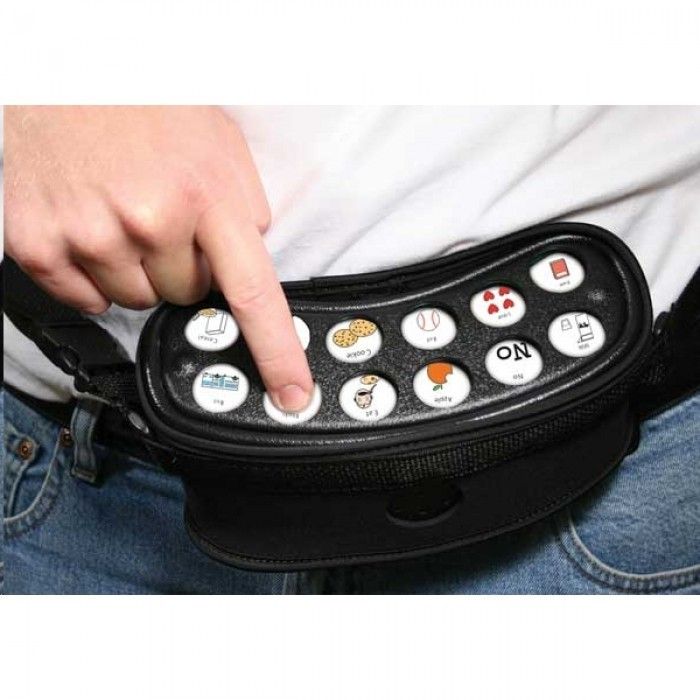 12-кнопочный коммуникатор закрепляется на поясе ребенка с нарушениями речевого развития. Вес устройства составляет 0,45 кг. Устройство записывает и воспроизводит сообщения длиной 5 сек. (записывается до 60-ти сообщений). При помощи устройства пользователь контактирует с окружающими, рассказывает о своих потребностях.