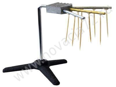 Состоит из металлического бруска ,одной стороне которого придана рифленая поверхность для размещения, например, таблетки сухого спирта. В полукруглый торец бруска на одинаковом расстоянии друг от друга вставлены одинаковые по размерам стальной, алюминиевый и латунный стрежни. На каждом стержне имеются по три одинаковые лунки. Брусок со стержнями установлен на подставке.