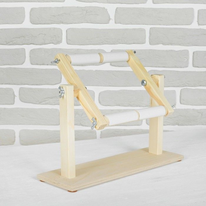 Настольные пяльцы с подставкой выполнены из натурального светлого дерева, поставляются в естественном цвете. Прочный отполированный станок оборудуется рамой из 4-х элементов. Круглые передвижные рейки (2 шт.) и прямоугольные боковины (2 шт.) с отверстиями позволяют регулировать расстояние, силу натяжения ткани. Манипуляции с креплением не требуют усилий.