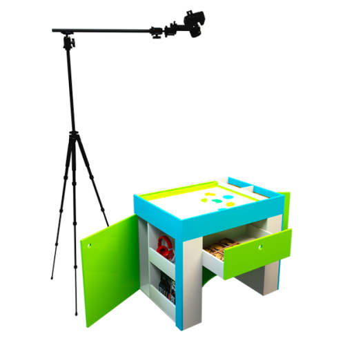 Веб-камера на штативе устанавливается над специальным столом с выдвижными ящиками и дверцами. Природные материалы, краски, инструменты и фигурки хранятся внутри. Верхняя поверхность огорожена бортиками, служит рабочем полем. Предусмотрены прямоугольные отделения для принадлежностей.