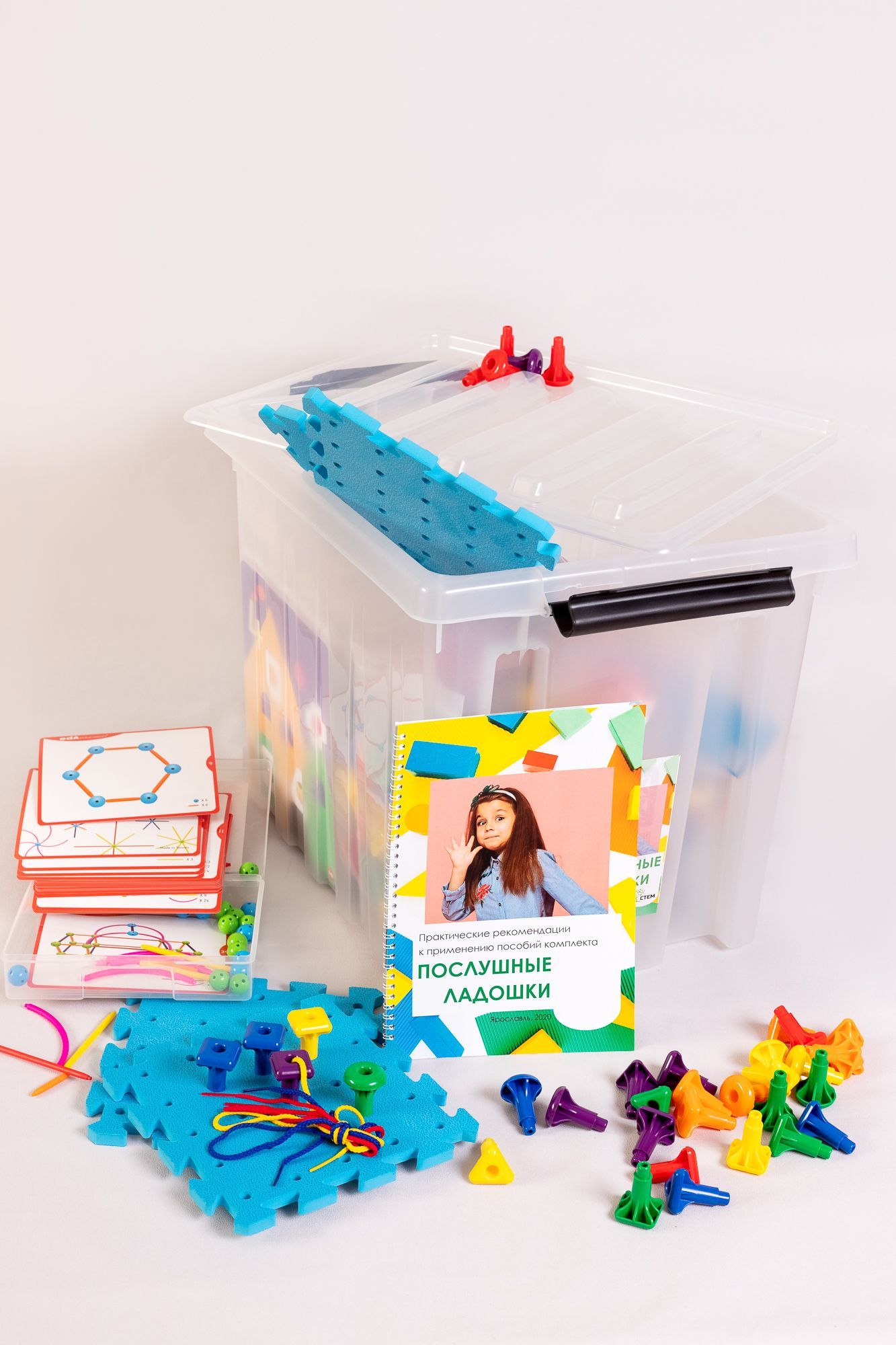 500 деталей 3-х форм и 6-ти цветов соединяются в цепочки. Во время занятий с набором дети осваивают логическое мышление.