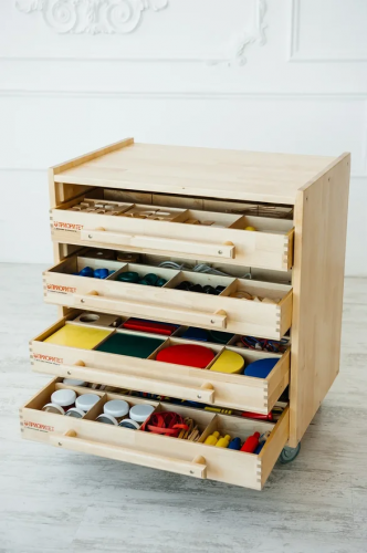 Модули поставляются в деревянных ящиках в комплекте с тумбой для хранения. Также к модулям приложены методические рекомендации. Набор направлен на приобретение новых навыков и всестороннее развитие.