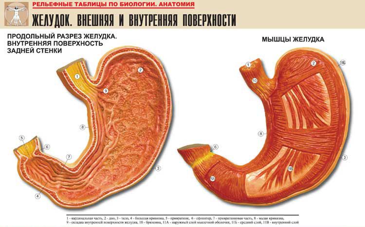 Рельефная таблица Желудок. Внешняя и внутренняя поверхности