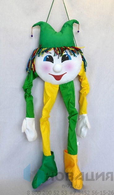 Ростовая игрушка представлена в виде сказочного персонажа в колпаке с бубенчиками. Мягкая кукла подходит для театральных спектаклей, праздников, логопедических занятий в ДОУ.
