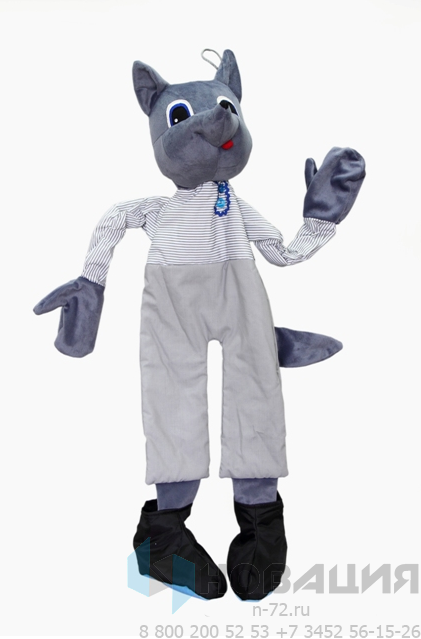Ростовая игрушка в виде волка используется в детском саду. Мягкая кукла подходит для театрализованных сценок, логопедических занятий, праздников.