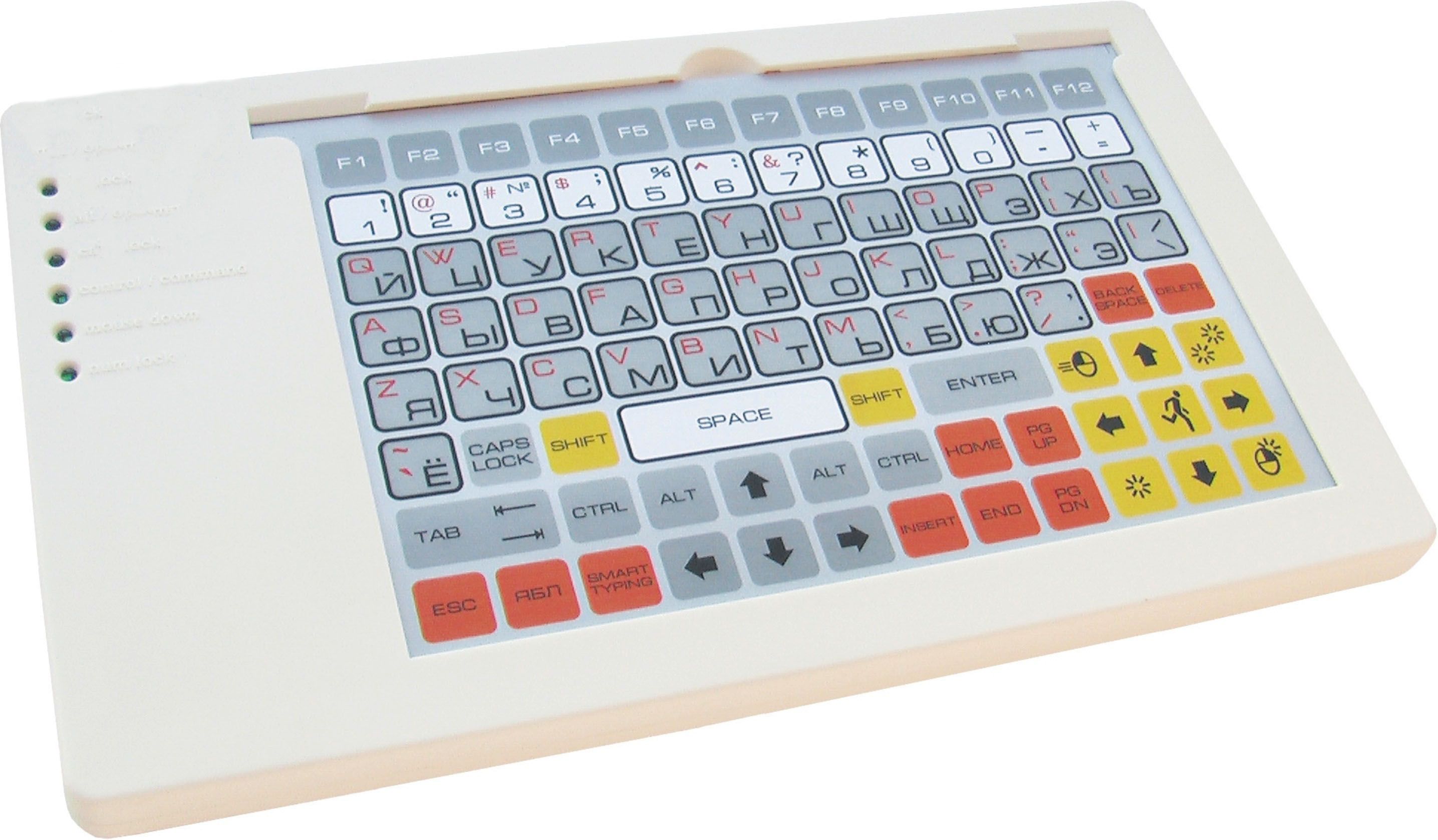 Сенсорная клавиатура предназначена для детей с нарушениями зрения, моторных функций и реагирует на движение руки и пальцев по поверхности клавиш. В комплекте с аппаратной частью поставляются 9 сменных накладок, с помощью которых можно работать с текстом, таблицами, калькулятором, веб-браузерами и другими приложениями: