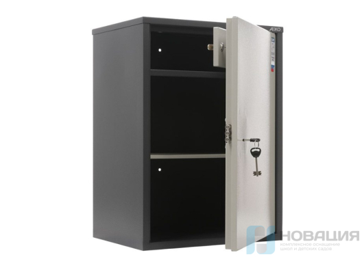 Шкаф имеет сварной тип конструкции с замком, который закрывается на ключ. Шкаф укомплектован полкой и отделением, которое оборудовано замком ключевого типа.