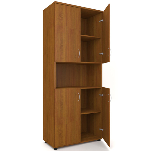Шкаф размещается в кабинетах ДОУ, школ, прочих муниципальных учреждений. Состоит из 3-х секций (верхняя секция — 2 полки, глухие дверцы; средняя секция — открытая ниша; нижняя секция — 2 полки, глухие дверцы). Подходит для хранения бумажных документов. Опоры шкафа регулируются.