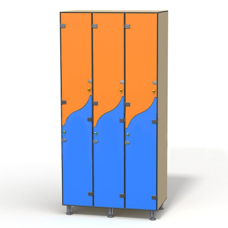 Изделие подходит для хранения водного инвентаря и одежды. Каждая из 3-х вертикальных секций оборудуется крючком, штангой для вешалок и дверцей на механическом замке.