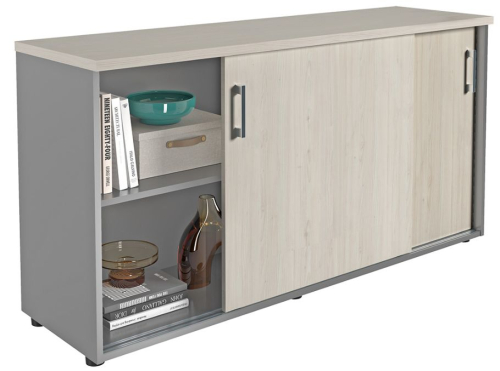 Шкаф-купе для документов выполнен из высококачественного ЛДСП толщиной 16 мм, включая фасадные элементы. Верхняя панель изготовлена из усиленного ЛДСП толщиной 25 мм и обработана защитной кромкой из ABS-пластика толщиной 2 мм.