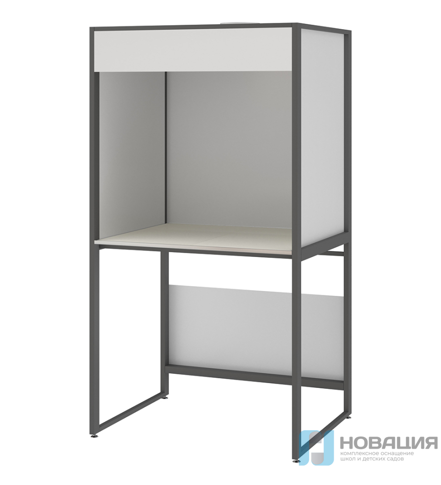 Каркас изготовлен без применения алюминиевых и пластиковых деталей в крепежных узлах. Выполнен из профильной трубы 50х25х1,5 мм на П-образных ножках, на регулируемых по высоте металлических опорах высотой 35 мм для компенсации неровности пола. Панели изготовлены из стальных листов толщиной 1 мм.