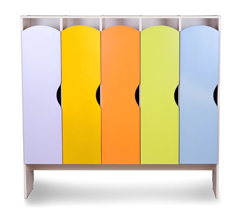 Шкафчик из пяти секций предназначен для оснащения приемной зоны в ДОУ.