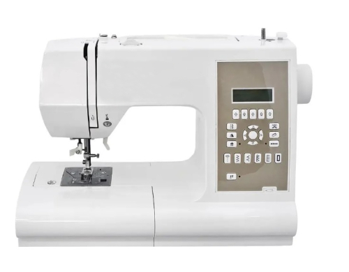 Электронная швейная машинка с автоматической настройкой и дисплеем используется в школе на уроках технологии.