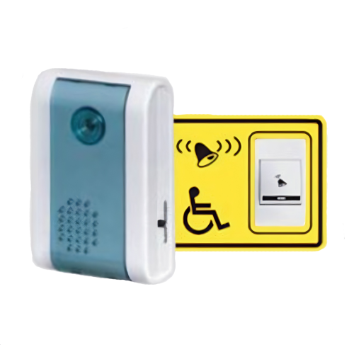 Система вызова персонала состоит из кнопки и тактильной таблички. При нажатии на кнопку приемник оповещает о поступлении обращения.