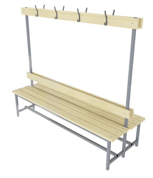 Скамья для раздевалок двусторонняя с вешалкой- практичный вариант для оснащения комнат для переодевания в школах, спортивных комплексах, и других учреждениях.