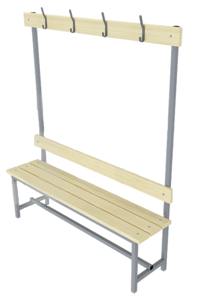 Скамья односторонняя с вешалкой предназначена для эксплуатации в раздевалках школ, спортивных комплексах и других учреждениях.