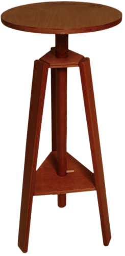 Верхняя круглая рабочая поверхность вращается, обеспечивая удобное положение изделия при работе. Регулировка высоты столешницы возможна в диапазоне до 150 мм.