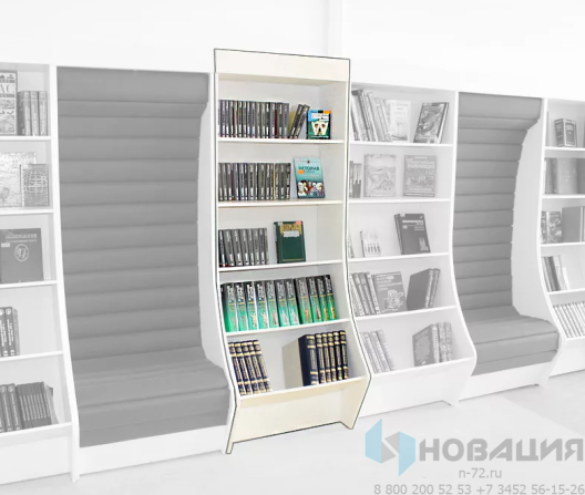 Стеллаж для современного информационно-библиотечного центра по желанию заказчика дополняется посадочным местом (приобретается отдельно). Несколько стеллажей и посадочных мест формируют единый комплекс.