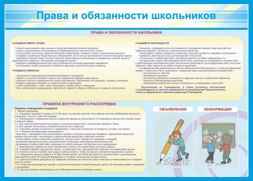 Стенд Права и обязанности школьников, 1400х1000 мм