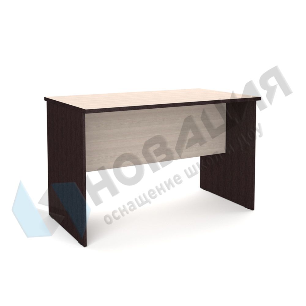 Прочный и устойчивый стол на 2-х сплошных опорах размещается в кабинетах ДОУ, школ, прочих муниципальных учреждений. Подходит для работы с бумагами, проведения занятий, собеседований. Практичная модель вписывается в любой интерьер, долгое время сохраняет представительный вид и не требует особенного ухода. За столом удобно сидеть с обеих сторон: царга располагается посередине.