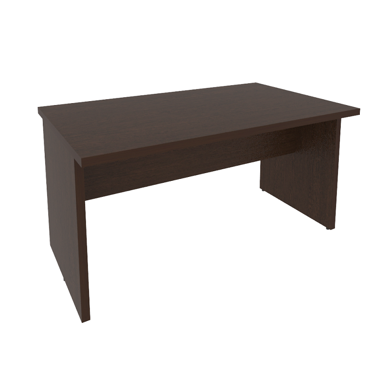 Переговорный стол с 2-мя сплошными боковыми опорами и короткой царгой, расположенной под прямоугольной столешницей по центру, устанавливается в кабинете муниципального учреждения. Поверхность из ЛДСП отделана кромкой (0,4 и 2 мм) в цвет мебели. Предусматривается регулировка опор под неровности покрытия.