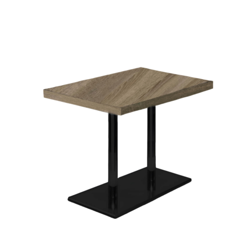 Столешница толщиной 32 мм, прямоугольной формы изготовлена из листового пластика. Обрамлена кромкой ПВХ. Подстолье имеет две круглые опоры, которые размещаются на подставках.
