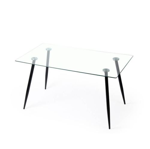 Мебель оснащается прямоугольной столешницей из прозрачного стекла толщиной 8 мм. 4 окрашенные опоры из металла крепятся под углом к столешнице при помощи хромированных элементов. Стол в стиле хай-тек обновит обстановку обеденной зоны или приемной.