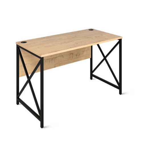Опоры изготовлены из металлических стоек с иксобразными элементами. Для поддержания порядка на рабочем столе предусмотрены специальные отверстия для проводов, расположенные с двух сторон.