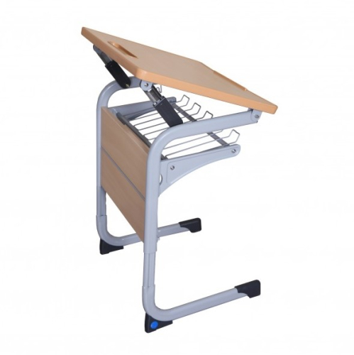 Конструкция оборудована механизмами регулировки высоты (может подстраиваться под 3-5 группу роста) и наклона столешницы (4-х позиционный механизм регулировки 0-30°).