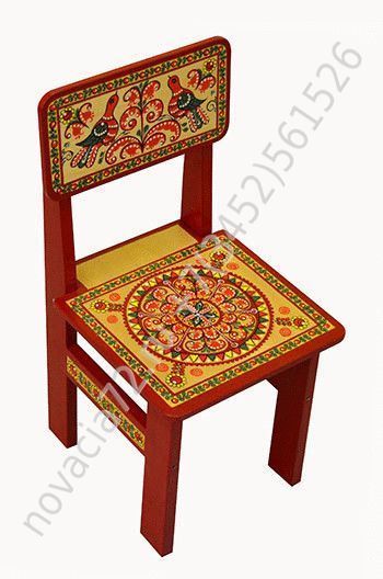 Стул с художественной росписью может применяться для оснащения музыкальных залов, уголков творчества. Мебель с художественной северной росписью развивает нравственно-эстетических качеств у детей. Рекомендуется для детских дошкольных и средних образовательных учреждений, а также для школ искусств.
