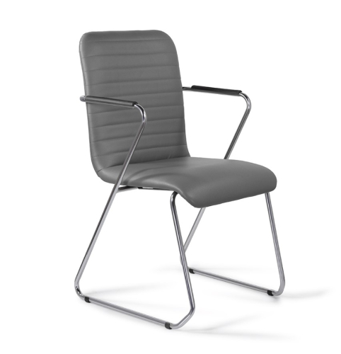 Кресло с пластиковыми накладками на подлокотниках используется в приемной, зале для презентаций, лаборатории. Стальной каркас защищается декоративным покрытием.