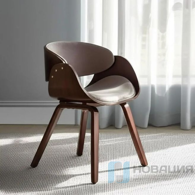 Материалы: каркас — гнутая фанера бука с отделкой шпона; обивка — флок.