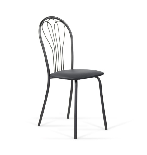 Общий вид конструкции подходит для неформальной обстановки. Хромированные прутья на спинке стула, выполненные в форме лепестков, придают мебели дополнительную утонченность.