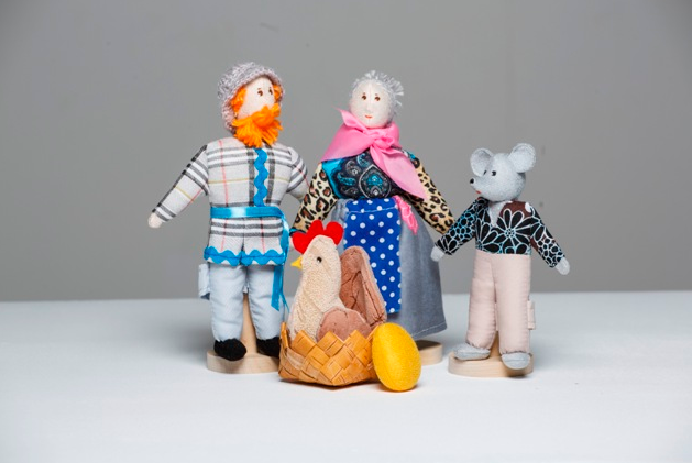 В комплекте 4 куклы с петельками: мышь, курочка с яйцом, бабушка и дедушка.