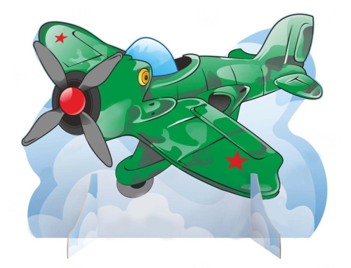 Декорация украшена изображением самолета. Рисунок нанесен с 2-х сторон. Предназначена для подготовки сцены к мероприятиям, посвященным Дню защитника Отечества и Дню Победы.