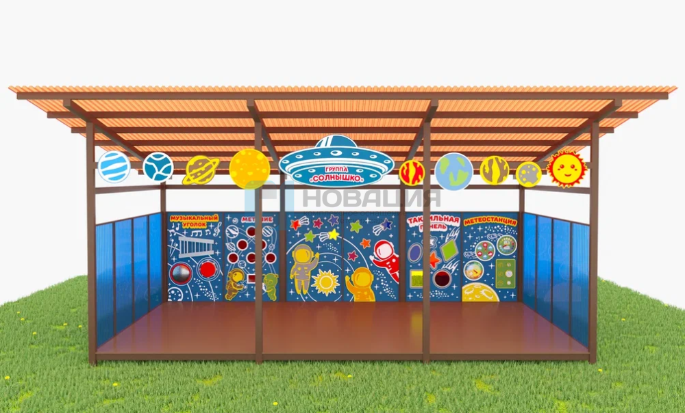Подходит для размещения на уличной площадке ДОУ или детского лагеря.