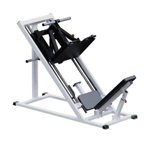 Тренажер для развития мышц ног представлен металлическим каркасом с упругими накладками, между которыми фиксируются бедра, нижняя часть спины и стопы человека. Наклонная пластина пресса поднимается усилием ног. Винты помогают регулировать нагрузку во время жима лежа.