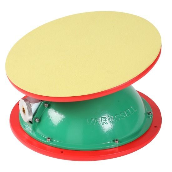 Игровой элемент для тренировки вестибулярного аппарата представлен опорой, на которую устанавливается балансировочный диск, и противоскользящей подкладкой. Занятия сопровождаются плавным изменением наклона тела, что позволяет работать над координацией движений.