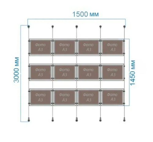 - 12 карманов - ДхШ 3000х1500 мм, 12 планшетов (А3) горизонтальных.