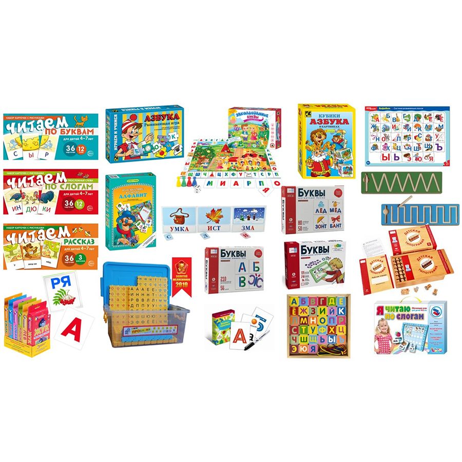 В комплекте: игры, карточки, конструктор, плакаты, бизиборды, дидактические пособия.